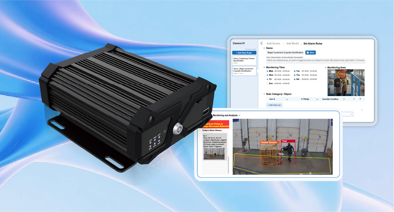 The E-Song Edge AI Box is an edge device that runs AI models locally. It supports various AI algorithms, including object recognition, behavior detection, speech recognition, track objects or people, face search, and OCR, which can be combined. It is compatible with common systems and allows flexible AI detection and alert rule settings through an easy-to-use interface.